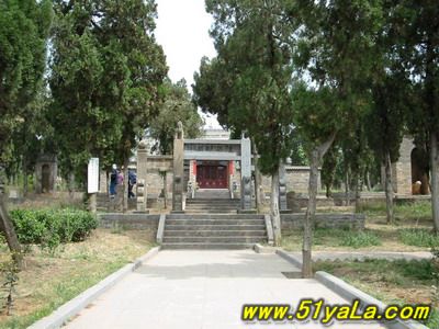 范仲淹墓介紹: 范仲淹墓在今伊川縣彭婆鄉許營村北約半公里處,北依萬安山,南面曲河水,東臨九龍山,西望龍門山。墓地內古柏林立,共達520余株。墓地分前后兩域,總面積約35畝。前域有一間青磚青瓦鋪成的山門,還有石坊、石翁仲、石羊、石馬等數件。范氏祠堂也在前域,一旁的饗堂內懸藍底紅字匾“以道自任”,為清代光緒帝所題。祠堂前有幾通高大石碑,護有青磚碑樓,其中兩側范文正公神道碑的碑額為宋仁宗親書的“褒賢之碑”四字,碑文為隸書,由宋代名臣、著名文學家歐陽修撰寫,范氏好友王洙書丹。祠堂后有范仲淹墓、仲淹母秦國太夫人墓及仲淹長子純佑墓。后域前部為仲淹次子純仁墓,其后有三子純禮、四子純粹墓及孫輩墓。再后十余米,另有唐代尚書裴遵慶墓。一般墓葬排列順序,多為父后子前孫更前。范墓則為仲淹墓最前,長子緊隨,次子、孫輩遠遠在后,故俗稱為“扯兒背孫”,較為獨特。 范仲淹以其人格魅力影響著后人,“先天下之憂而憂,后天下之樂而樂!”希望能把范仲淹的這片名文刻錄在墓地,使旅游的人受到精神的陶冶!