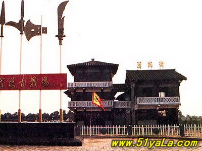 官渡古戰場景區位于鄭州中牟縣城東北2.5公里官渡橋村一帶,因傍官渡水而得村名。村內原有關帝廟,存清乾隆年間石碑,碑文云“官渡乃關帝拒袁斬將處”。據《中牟縣志》載,這里舊有城叫“官渡城”,又有臺名“官渡臺”或“曹公臺”,乃東漢曹操與哀紹相拒之處。附近有“水潰村”。距官渡20公里霍莊有“袁紹崗”,傳說是袁紹屯兵處。