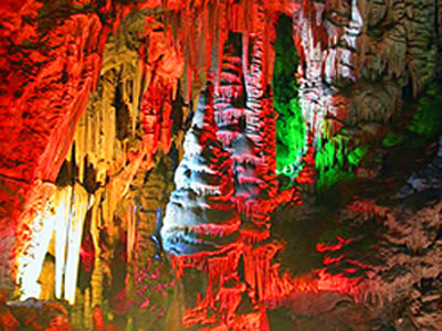 西溪仙人洞位于西昌城南15公里處的西溪鄉,是一處長達10公里以上,規模顥大的巖漿溶洞。洞體彎曲起伏,寬窄相間。窄處,只能一人穿行;寬處,卻是廳黨連貫,可容數百上千人。洞內巖溶景觀千姿百態,或動或靜,或禽或獸,栩栩如生,鬼斧神功。有的如宮殿庭院,有的如山川河流,有的如花草樹木,有的如人獸鳥禽;有的顏色如紅艷欲滴,有的則碧綠透明,五光十色,繽紛絢麗,迷人眼目,宛似仙境。一條暗河緊貼洞壁向北流去,耳畔不時傳來潺潺流水聲,似音樂節拍,沁人心脾,心曠神怡。洞內一數10米深的豎井旁,立有清光緒23年春的石碑一座,上篆刻有“深幽奇險”四字,故人稱“仙人洞”也。 西昌西溪仙人洞,位于西昌市東南部的涼山州螺髻山畜牧場境內,屬省級自然風景點,距西昌市區30千米,有9千米長的專用公路與108線國道相連。 西昌西溪仙人洞洞口海拔2025米。洞深預測約10,000米,屬石灰巖溶洞,形成年代約在億年以上,F已開發的近700米深處,洞高在2-20米之間,寬約3-25米不等。依其洞體延伸狀況,可劃分為6個"大廳"。目前,洞內已鋪設了金屬臺梯和防護欄,安裝了各色燈光,齒通了出口。洞中巖溶形態發育比較齊全。既有暗河、瀑布、深潭、豎井、落水洞、天生橋、跌水石等,又有溶溝、石芽、石筍、石柱、石幔、石蘑菇、石鐘乳,琳瑯滿目、形態各異,景觀相連,千姿百態,令人眼花繚亂,目不遐接。 西昌西溪仙人洞由于地處螺髻山下,因而出入口及其周邊植被良好,林木蔥郁,環境優美,氣候宜人,年平均氣溫在15℃-17℃之間。