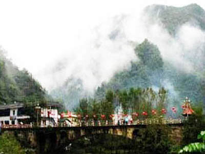 桃園為景區(qū)腹地,是在清朝時(shí)期為紀(jì)念三國(guó)的劉備、關(guān)羽、張飛在桃園三結(jié)義,建寺而得名。這里地勢(shì)南北高,中部低,山聳嵌空,焦家河自東向西橫貫其間,這里是自然風(fēng)光薈萃的地方,沿河直下,崖石奇特,古木參天,日光罕照,水質(zhì)潔靜,嘉魚潛游;兩岸山勢(shì),有似廬山奇峰怒拔,有似黃山瑰麗典雅,有似峨眉飄逸秀美,有似劍門陡峭險(xiǎn)峻,真是雄、奇、秀、幽相映生輝,多彩多姿,統(tǒng)一和諧,尤以燕子巖的峰叢林令人叫絕。桃園北西十里的燕子巖,這里地老天荒,生態(tài)原始,這里大小不等形如柱的30多根峰叢石林,低者50余米,高者數(shù)百米,有的獨(dú)立,有的相依,峰叢直刺云天,雄偉壯觀,瑰麗無比,峰叢頂長(zhǎng)有古松、灌木叢,還有世上稀有的梭羅樹,姿態(tài)各異,氣象萬千。 燕子巖西去便達(dá)韓溪河,因蕭何追韓信經(jīng)此而得名。這里河道斗折蛇行,彩石為底,幽峽曲徑。溯水而上,既有激流素湍,瀉玉碧潭,也有清波倒影,遺韻江天。兩岸青山多姿,數(shù)萬畝林海,古木參天,老藤纏樹。黑龍?zhí)叮~倉子清峭幽邃,美不勝收。怡情山水,陶然物外。 秀雅嫵媚普陀山,從韓溪河碑溝口西行十里,便至普陀山,山上秀峰環(huán)合,小巧別致,幽巖流浪,群猴戲山,天生橋雄視南天,綠島古剎隱沒山間,蘿花壩詩間濃馨,雷家溝雄奇秀麗,山下十余農(nóng)家,片石蓋房,斫木為器,民風(fēng)古樸,賓至如歸,普陀山西北原始林中有一洪荒神秘的(萬)字格,方園三平方公里,其間銅墻鐵壁,溝壕石縫,縱橫交錯(cuò),地質(zhì)奇特,林木花草,了難全識(shí);虎豹熊鹿,不一而足;綠林翠蔓,蒙絡(luò)搖綴,人入其中,山尤冥滅,如陷迷宮,極有科研觀賞價(jià)值。 返途出韓溪,便是兩河相并的兩河口,仙景再現(xiàn),龍架煙霞,赤壁橫空,河口瀑布,桃花仙子,神女峰,結(jié)義石……自然風(fēng)物,妙趣橫生,如詩如畫,步移景換,目不暇接,令人神往。 桃園東進(jìn)東北上十里,便入林海滔滔的大壩原始林區(qū),林區(qū)木材積量達(dá)400萬立方米,在這四十萬畝古森林中,有原始天然落葉闊葉為主的亞熱帶山地常綠與闊葉落葉混交林為次的落葉闊葉林,亞熱帶山地針林與亞高山針葉林等。還有上百種珍貴植物;有世界少有、五洲稀有、光霧山富有的經(jīng)英國(guó)皇家學(xué)會(huì)鑒定命名的古植物化石“巴山水青杠”,還有火燒不滅,水侵不入的楠香樹,花朵如碗大的各色杜鵑花樹……林區(qū)動(dòng)物資源豐富,種類繁多,現(xiàn)已發(fā)現(xiàn)脊椎動(dòng)物275種,屬國(guó)家保護(hù)動(dòng)物20余種,四川省林業(yè)研究所、四川省森林勘查設(shè)計(jì)院、北京林學(xué)院等科研單位實(shí)地調(diào)查結(jié)論,它是四川盆地北緣山地重要的基因庫,是國(guó)家寶貴種質(zhì)資源,為四川北部的天然屏障,經(jīng)四川省列為自然保護(hù)區(qū)。 光霧山,地處桃園南,頂峰三尖二缺,平緩變化,遠(yuǎn)觀似臥佛,因常年云霧繞而得名,山上氣候變化無常,游人到此,不能高聲叫喊,否則,頓時(shí)大雨瓢潑。盛夏初秋,頂峰瞰望茫茫綠色世界,使人沉沁在林海之中,若是涉足林海,攀援古樹,臥身花叢,仰望藍(lán)天,幽靜怡適,令人心曠怡;深秋紅葉似火,泉?dú)怙h香;寒冬銀壯素,玉樹瓊花,好一幅原始獷野的自然美景,人間難得的天造奇觀。 光霧風(fēng)光山水奇秀有形有魂,更是一座文史寶庫。漢張魯囤住漢王臺(tái),諸葛亮秣馬牟陽城,張飛扎營(yíng)落旗山,白發(fā)魔女征服巴蜀四杰的巴俗關(guān),“川北民軍”的大本營(yíng)巴山游擊隊(duì)的遺址均在區(qū)內(nèi),給后人留下了可歌可泣的壯麗詩篇,也給光霧山風(fēng)景區(qū)增添了又一道風(fēng)景線。