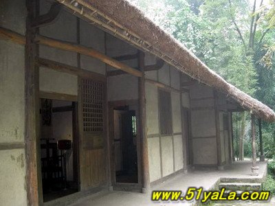 《春夜喜雨》、《茅屋為秋風所破歌》等就是在這里寫的。為了紀念這位偉大的詩人,北宋以來,就有人在詩人故居處建園立祠,供人瞻仰。當年杜甫居住的草堂早已不存在了。現(xiàn)在的草堂,實際上是后人為紀念杜甫而建的一所優(yōu)美園林,園林總面積約300畝,梅園楠林,翠竹千年。溪流小橋交錯庭中,使詩人故宅增添無限詩情畫意。