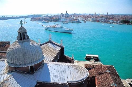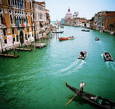 最后再打開一扇窗,欣賞威尼斯無盡的魅力吧!圣馬可鐘樓是全島的制高點,樓頂的窗外360度地潑灑開一張巨大的畫卷。淡淡陽光下,整座水城像一幅19世紀的印象派油畫,不是濃墨重彩,而是淺淺鉤繪。向陽處海面波光粼粼,周圍小島如一個個模型浮在水面,島上的房屋屋頂大多為褚紅色,間雜著高高的鐘樓,就像童話里的小鎮?s成黑點的橋、船、人,緩緩地移動著,全是不著不急的樣子。說來威尼斯真是座讓人急不得的城市,它沒有車,而船本身速度就慢,另外班次也不如公交車密集,如果是有急事的人非抓狂不可。但這不就是威尼斯的獨特魅力么?它不適合趕時間談生意,它只屬于愿意放慢腳步享受生活的人。