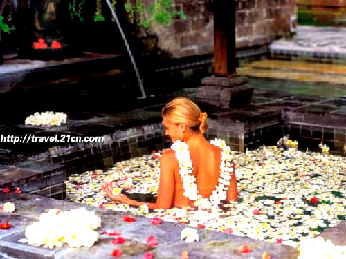 ![]() 飛機(jī)降落在巴厘島的時候,已經(jīng)是午夜時分,告別了北京嚴(yán)冬的寒冷,一份濕熱迎面撲來。巴厘島沒有冬季,一年只分雨季和非雨季,我們到的這個時候正是巴厘島的雨季,一行人暗自慶幸,看來不需要涂厚厚的防曬霜了。 事實證明,我們的預(yù)想是錯誤的。當(dāng)早上的陽光懶懶地灑滿房間的時候,我們不禁感嘆,原來雨季也有這般明媚的朝陽。據(jù)介紹,在巴厘島的雨季,雨水常常來得羞澀,淅淅瀝瀝之后便又是艷陽高照,而我們的到來仿佛讓雨季里的陽光愈加歡快,連續(xù)幾天都是陽光燦爛。 陽光———綠色 人們常說,來到巴厘島,你便是裸露在陽光里,看來一點(diǎn)不夸張。公路兩旁茂盛的椰子樹并不能遮擋陽光的傾灑,一邊是車內(nèi)歡快的歌聲,一邊是絲絲縷縷的陽光在車廂內(nèi)跳躍。熱帶雨林的氣候讓巴厘島擁有許多特色植物,椰子樹是最常見的,我們經(jīng)常會有種感覺:車子不是在街道上行駛,而是在一片森林里。在一片樹林中穿梭,長滿芒果、紅毛蛋的植物就那般赫然地從車旁閃過,陽光的滋潤讓它們生長得分外茁壯,當(dāng)?shù)厝吮硎荆诎屠鍗u,每一天都是綠色的,陽光賦予了這些樹木更鮮活的生命,沒有綠色和陽光的日子是無法想象的。為了保持滿目的蒼翠,巴厘政府規(guī)定每人每年種一百棵樹;為了綠色能夠包圍整個小島,巴厘政府規(guī)定所有的房子都不能超過一棵椰子樹的高度,也就是大約15米,而屋頂不能用水泥澆筑,必須用瓦片或者茅草覆蓋。這般嚴(yán)格的規(guī)定讓巴厘島的綠色揮發(fā)得如此肆意,于是,一路風(fēng)景中多了份對綠色的虔誠和對陽光的眷戀。 陽光———海灘 如果說“陽光、綠色”的修飾讓巴厘島充滿了活力,那么“陽光、海灘”給予巴厘島的便是一份別樣的浪漫。看海是喜歡巴厘島的主要理由,漂亮的海濱風(fēng)光在這里隨處可見,其中最有名的是Sanur、Kuta和NusaDua三個海灘。來巴厘島的游客都知道這樣一句話:巴厘島的浪漫生活,從海灘開始。滿目是藍(lán)天、白云、銀沙、碧水,還有那數(shù)不清的亮麗色彩裝點(diǎn)著多姿的帆、舨和搏浪的人、悠閑的人。欣賞過日出的壯麗,到了傍晚,端坐在海邊眺望落日則是另一番景色,另一番心境。看著耀眼的光照漸漸淡抹,宛若蛋黃的夕陽與垂釣的漁舟相伴,漸漸隱沒,給人一種無比舒適的寧靜之感。 在巴厘島,酒店挨著海灘并不是一件稀奇的事情,我們的酒店便是如此。早上的時光是自由的,還沒來得及吃早飯,興奮的我們已經(jīng)把自己扔在海灘上,陽光下的大海顏色愈加蔚藍(lán),而沙灘已經(jīng)是暖的,舒展、閉目,仿佛陽光可以蕩滌身心,周圍的一切竟然只是安靜和溫暖的。 陽光———SPA 來巴厘島之前,自己便已經(jīng)下定決心一定要感受一下當(dāng)?shù)氐腟PA,到了這里,導(dǎo)游也告訴我們,巴厘島的神廟多,SPA店也很多,我們在街邊不時地看到各種檔次的SPA店的廣告牌。在酒店里,SPA也是一項不可或缺的安排,而更吸引我們的是,幾乎每一處都會有戶外SPA的形式供客人選擇,酒店的老板告訴我們,在自然的環(huán)境下,體會天人合一的感覺是最理想的狀態(tài)。 戶外SPA價錢會稍高一些,但是看著墻邊彌漫的枝葉中露出的朵朵雞蛋花,聽著汩汩的水聲和吱吱的鳥叫,心情已經(jīng)開始平靜和舒展,這樣的氛圍讓人不得不去著迷。依墻圍起的浴缸中散發(fā)出陣陣的清香,水中的玫瑰花瓣和透過樹葉映在水中的點(diǎn)點(diǎn)陽光讓自己仿佛徜徉在花海,抬起頭,感受陽光跳躍在臉上,已是醉人。 陽光———藝術(shù) 一路走來都是晴天,而趕去烏布市場的那天,竟然小雨彌漫。我們先是停留在距離烏布街區(qū)很近的一家餐館,導(dǎo)游告訴我們,吃過午餐后,還有可供選擇的culture activity,一開始,我們都沒明白具體是什么意思,等我們來到了一個別致的小走廊里,才恍然大悟,這里竟然是一個藝術(shù)工坊,幾個手工藝人圍坐在一起忙活著手中各樣的小玩意兒,對于游客的好奇他們絲毫不吝嗇,只要你感興趣,便可以討要一套工具跟著他們做起來。畫彩蛋看似是最有難度的,挑戰(zhàn)的人自然很多,師傅很耐心,勾勒、上色、噴漆……彩蛋在他的手中瞬間變身,而我們還都是笨手笨腳。經(jīng)過了大約半個小時的學(xué)習(xí),各色的彩蛋紛紛“出爐”,師傅索取了我們的姓名印在彩蛋上,讓我們無比興奮的是,這些“作品”我們可以帶走卻并不需要費(fèi)用。 新鮮的彩蛋還不能收在盒子里,我們便都舉在手中,仿佛取得了巨大的成功,而轉(zhuǎn)身走出工坊的時候我們才發(fā)現(xiàn),雨早已經(jīng)停了許久,陽光又是歡快的。