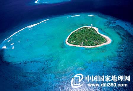 地處澳大利亞東面的新喀里多尼亞島,屬于美拉尼西亞島群,這個狹長型的島嶼面積只有朝鮮半島的三分之一,卻因四周環繞著原始森林、美麗的珊瑚礁、氣候適宜被輿論稱作“世界盡頭的天堂”。這塊心形紅樹林生長在新喀里多尼亞島北部海灘一片地勢稍高的坡地上,中間部分是植被稀疏的黃色沙地。 對于人類來說,“心”是愛的象征,因此我們對自然界存在的所有類似的地貌造型和景觀都有著特殊的敏感。它們讓我們驚奇欣喜,浮想聯翩,也讓我們去留意尋找甚至去刻意創造。 樹上類似心形的樹葉、沙灘上發現的心形鵝卵石、天空中偶然見到的心形云團、樹林里野蘑菇簇擁出的心形圖案,甚至宇宙中出現的心形星云都被人們賦予了愛的含義。在臺灣,人們還培育出了心形的游樂魚。 自從幾年前在克羅地亞的扎達爾附近偶然發現了Galesnjak這個心形的小島后,人們對愛心的追逐更加狂熱。無數的情人伴侶們紛紛涌到那里去結婚和度過情人節的假期。這使得Galesnjak小島以“情人島”的美名很快傳遍世界各地,也使得小島的主人因此而發了財。繼之而來的,卻是Galesnjak心形島與澳大利亞昆士蘭著名的心形島之間誰更像心形的不休爭論。 ![]() 這是斐濟維提島沿海的盧阿島上一處心形景觀,在彩色海水的映襯下,美麗得讓人暈眩。作為斐濟有人居住的最主要的島嶼之一,維提島跟其他300余個島嶼一樣,都是被珊瑚礁環繞的火山島。所以這些島嶼上的海洋景觀豐富,海底也因為有各類魚群生活而變得五彩斑斕。