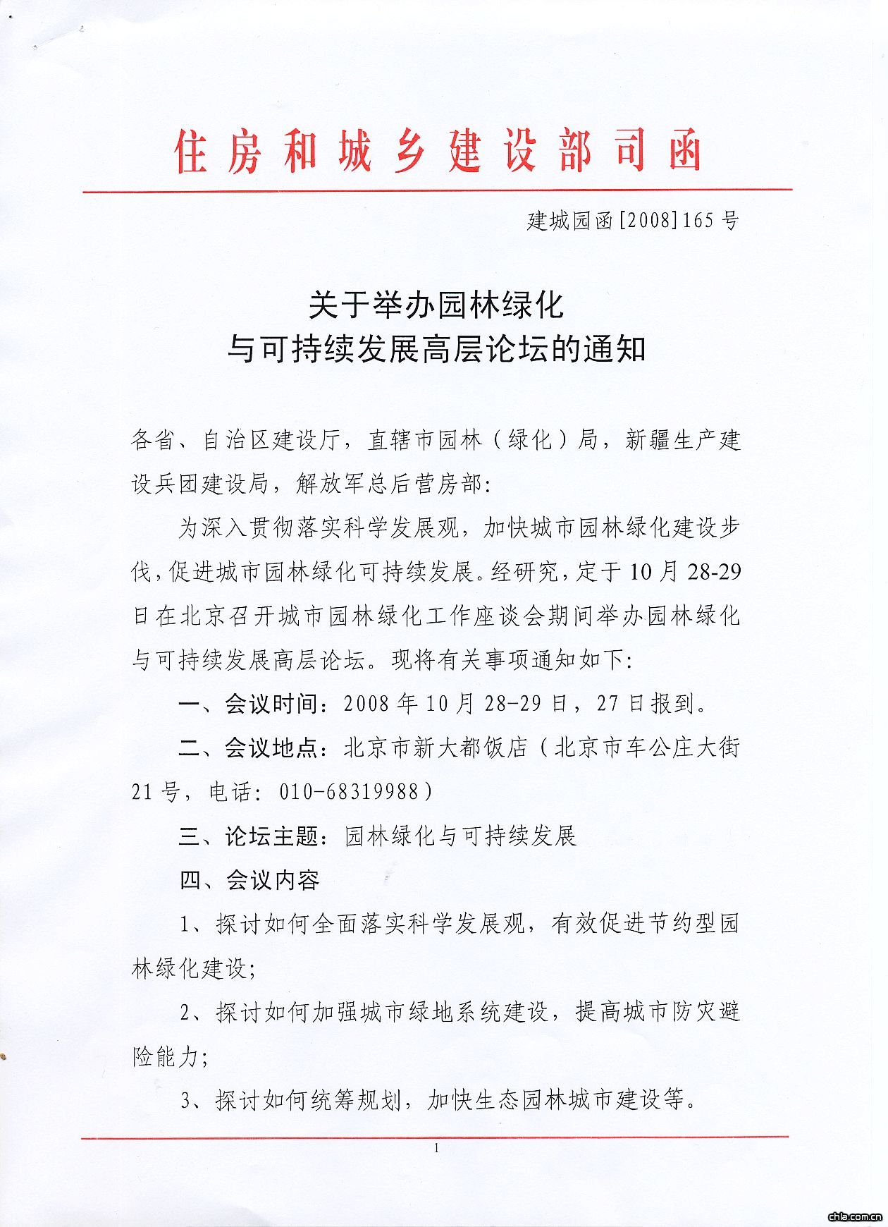 關于舉辦園林綠化與可持續發展高層論壇的通知