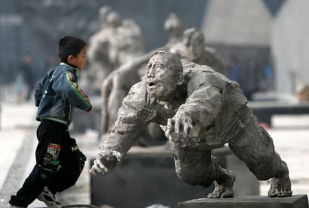 南京大屠殺紀念館擴建工程組雕--逃難(引自新華網)