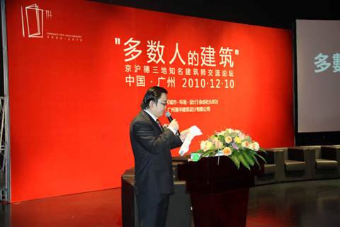 12月10日,京滬穗三地知名建筑師齊聚廣州大劇院,圍繞"我們生活的這個時代","建筑這點事","為人民服務(wù)--做一名好建筑師"三個主題展開熱烈討論,現(xiàn)場氣氛多次被推向高潮。《城市·環(huán)境·設(shè)計》雜志社主編、天津大學(xué)建筑學(xué)院特聘教授彭禮孝主持了論壇開幕式。天津大學(xué)建筑學(xué)院副院長孔宇航、場域設(shè)計主持建筑師梁井宇、廣州土人景觀顧問有限公司首席設(shè)計師龐偉分別擔(dān)任三場分論壇的學(xué)術(shù)主持人。 出席論壇的嘉賓包括中國建筑設(shè)計研究院副院長、總建筑師崔愷,天津華匯工程建筑設(shè)計有限公司總建筑師周愷,上海現(xiàn)代集團華東建筑設(shè)計研究院總建筑師汪孝安,同濟大學(xué)建筑設(shè)計研究院副院長曾群,深圳市建筑設(shè)計總院副院長、總建筑師孟建民,廣州瀚華建筑設(shè)計公司董事長、總建筑師冼劍雄,深圳市建筑設(shè)計總院副院長、總建筑師孟建民等京滬穗三地的30多位知名建筑師。 本次論壇活動由《城市·環(huán)境·設(shè)計》雜志社、廣州瀚華建筑設(shè)計有限公司聯(lián)合主辦。活動當(dāng)天,正值瀚華成立十周年慶典,來自全國各地的建筑師、廣州當(dāng)?shù)亟ㄖ䦷煛⒚襟w記者、高校師生等600多人積極地參與了本次活動,使得廣州歌劇院的小劇場座無虛席。