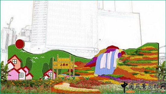 "大地歡歌"花壇以畫卷的形式來展現了社會主義新農村建設生計盎然的面貌。"大地歡歌"花壇占地100平方米。