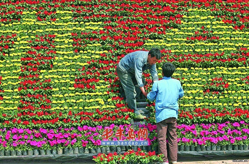 4月28日下午,在嶗山區(qū)枯桃花卉交易中心門前廣場,工作人員正在搭建一個巨型的大花壇,迎接將于4月30日開幕的第四屆山東省插花花藝大賽和第五屆枯桃花會。據(jù)悉,五一節(jié)期間唱主角的花會將以“奧運激情”為主題,除了有大型花卉、奇石展外,還邀請了韓國插花花藝師進行現(xiàn)場制作和講座,展示外國流行的花卉技藝。