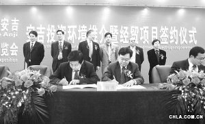 博覽會期間,在安吉投資環境推薦暨經貿項目簽約儀式上,香港中小企業總會安吉國際中小企業工業園、安吉縣·中國辦公家具出口基地、中國白茶城項目負責人分別與安吉縣政府有關領導簽約。