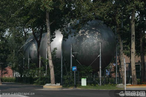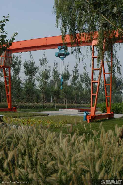 紅磚樓的質樸、銹鐵的風雨印跡、椿樹的鄉土與自然、紅色標語的往事記憶、詭異的工業構筑物的造型……這一切都與CBD的存在和氛圍形成強烈的對比。俞孔堅想,作為景觀設計師,必須用生態的眼光來善待場地中的一草一木、一磚一石,尊重原有的設計和精神,在此基礎上引入新的功能。