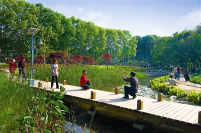 當(dāng)時(shí),整個(gè)城市的建綠思路也正面臨新的定位和轉(zhuǎn)型,如何改造好它成為一個(gè)新課題。“這也是我們?yōu)榱艘蛔珗@首次面向國際征集改造設(shè)計(jì)方案!敝钡2005年,我們和加拿大園林專家文森特·艾思林,經(jīng)過數(shù)年多次論證和修改之后,最終提交了今天得以實(shí)現(xiàn)的設(shè)計(jì)理念——建設(shè)一座擁有生態(tài)濕地系統(tǒng)的與街市無縫對接,向公共街道和居民社區(qū)無限延伸的開放式新型公園。