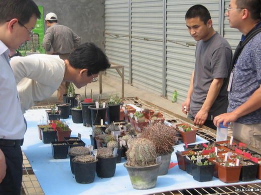 ![]() 國外進口的品種大龍冠 ![]() 一愛好者正在仔細參觀展品 上海地區參展的“白檀綴化”是國際上新發現的品種,據展會工作人員介紹,這種多漿植物如今在原產地南美洲野外已經滅絕。而從國外進口的品種大龍冠,展現了野生多漿植物的風采,粗壯的刺,暗沉的顏色,把觀者帶入了熱帶沙漠。 多漿植物繁殖栽培容易,大多耐室內半陰、干燥的環境,是理想的室內盆栽植物。但是生長期較長。據一位參展者介紹,這次帶來的是他精心培育的品種,雞蛋大小的一盆花他就培育了近十年。而其手中的另一盆拳頭大小的花卉,年齡比他的年齡都大,已生長了五十多年。