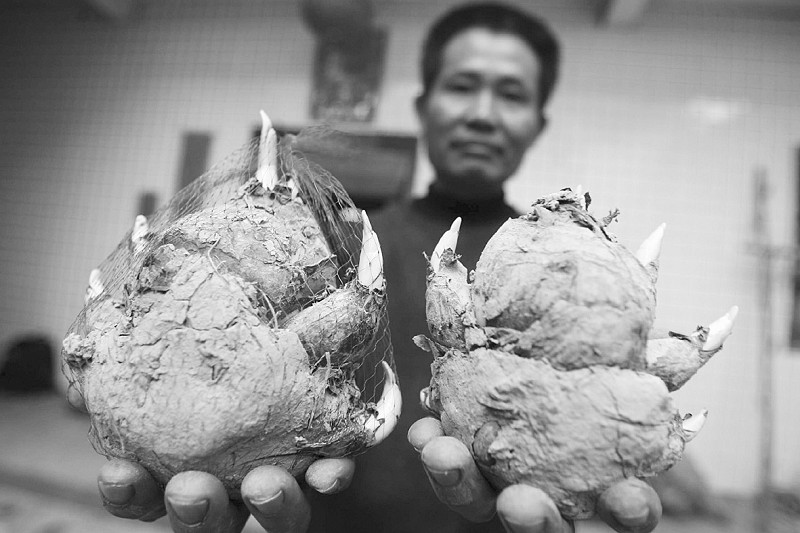 14日上午,漳州市九湖鎮大梅溪村村民吳志明一身輕松地去幫助親戚建房子。因為今年他的水仙花大球特別多,收購商紛至沓來,早早就被搶光了。 然而其他花農并沒有像他這樣好運,今年全漳州市水仙大種球比例偏低。 物以稀為貴,今年的“凌波仙子”身價倍增,目前水仙球的整體銷售保持旺盛勢頭。據漳州水仙花協會秘書長葉季波觀察,從上市至今,各等級水仙花種球都有所漲價,有些漲幅甚至達到每球1元。