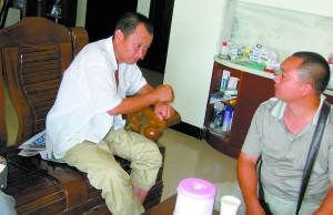 葉片、樹干、樹根……銀杏樹所有的部位都得來一次“立體淋浴”,才能耐受近日的連晴高溫。10日上午11點,驕陽似火,巴南區魚洞濱江路附近,園林綠化工人頂著烈日為銀杏樹澆水。只有在中午12點到下午4點這一時段內,他們才停止作業。其余時間,市政園林所的150多名綠化工人分成20個抗旱小組,輪班對城區8萬多株大樹澆水、抗旱。 加完夜班他中暑了 “三分種,七分管!63歲的陳德明從1979年進入園林系統,從事樹木病蟲害防治,一干就是31年。陳德明和40多歲的穆禹偉,是巴南市政園林所僅有幾名技術骨干。從7月底,主城區連續高溫以來,他們就利用晚上的時間到處巡視,為大樹治病害。 “城區的樹木有一半以上緊挨著門面,所以噴藥選在夜間才能避免對行人和商家的干擾!标惖旅饕坏较挛4點,就先到濱江路的生態林內噴藥,到了晚上再去噴行道樹。 8日凌晨,他干到3點,由于連續多日加班,他一回到家就倒在床上睡著了。次日起來,他才發覺全身沒有力氣,一曬太陽,身上皮膚就刺痛,到醫院一檢查,中暑了。 千名園丁加班保苗 “這些行道樹,就像我的孩子一樣,幾天不見就不舒服!弊蛱焐衔纾姓䦂@林所的同事,到陳德明家中送上慰問品時,陳師傅說起他的感受。3年前,他退休時,曾有房地產公司請他去做園林主管,他沒有去,繼續留在園林所拿著不到2000元的工資,從技術上對年輕的同事進行“傳幫帶”。 目前,巴南市政園林所有30多名固定的綠化工崗位,遇到高溫天請來的“外援”有100多個,輪流上陣!爸形12點到下午4點澆水對樹木生長不好,這段時間是園丁們寶貴的休息時段。”綠化科長文世俊說。 記者近日從市園林局綠化處了解到,目前主城各區上千名園林綠化工人正加班加點,對新栽植樹木進行重點管護。 銀杏樹需立體淋浴 10日上午11點,烈日下的巴南龍洲灣濱江路,一排高大的銀杏樹下,干澀的泥土里鉆著許多小孔。 “銀杏樹需要水,但又不能過量!蔽氖揽≌f,新栽的銀杏樹要進行一次“立體淋浴”,先沖淋葉片,再順著樹干往下澆,最后利用小孔把水澆透!傲Ⅲw淋浴”后,要在第三天才澆第二次水。而香樟、桂花、水杉和欒樹、重陽木,澆水的方式又各有不同。 建筑工地的工人遇到高溫可停工,但是園丁不能停。記者10日在澆水現場感受了一下:每當清涼的水澆到土里,一股熱氣迎面撲來,澆水的工作并不輕松。如果防護措施不當,很容易中暑。 ![]() 同事看望中暑的陳德明(左)(本報記者 張錦旗/攝)