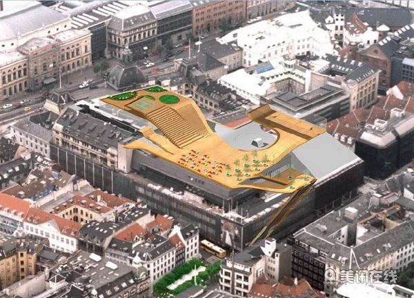 隨著新的地鐵線路的開通,丹麥哥本哈根市將迎接一個新的公共空間,即位于哥本哈根市中心的瑪格辛百貨商場(Magasin du Nord)上的一個3,000平方米的名為“High Square”的空中廣場。該廣場是集合了空間、新鮮空氣與壯美景觀城市綠洲,它包括戶外影院、出租車下車區、環形交通路線、咖啡屋與舞臺等各種綜合功能。