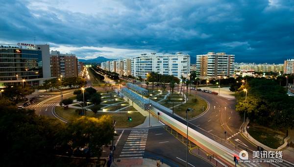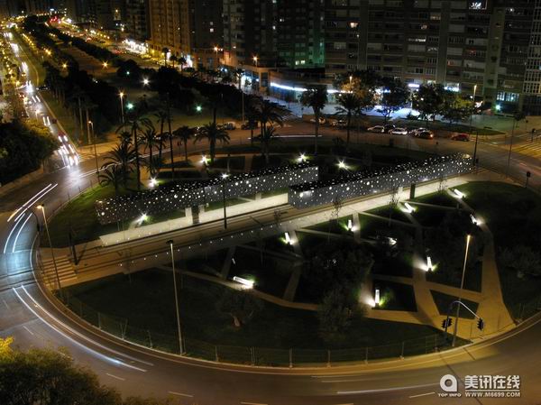 晚上,他們變成了兩個明亮的燈,照亮了站臺。軌道上的長凳,使乘客在等車的時候能和自然來一個親密接觸。