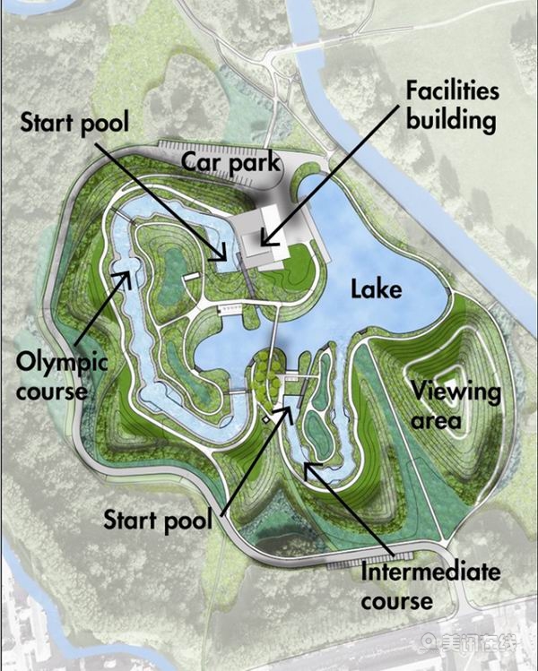 2.新公用場地——皮艇水道將被修建在一個寬闊的公用場地的內部。景觀上的工作包括美化貫穿整個場地的小路和橋梁,以達到使觀眾進入并觀賞的目的。