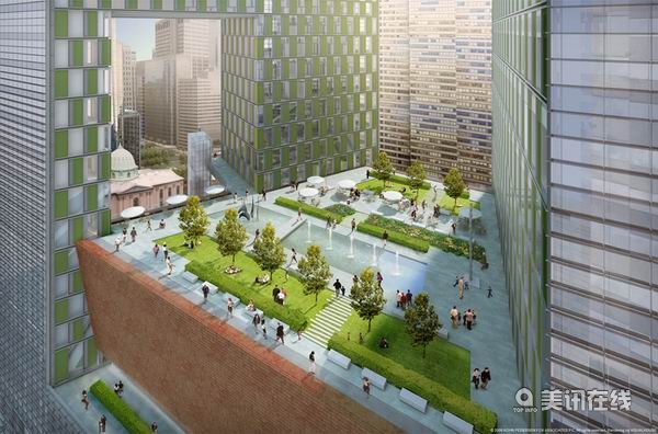 這棟綜合大廈將容納一家有320間客房與3層大廳的26層五星級酒店、30萬平方英尺的零售空間、63層A級辦公空間、餐廳、空中天橋舞廳、屋頂花園、咖啡屋、電影院、兩層健身會所以及360個地下停車位。特別是這個空中天橋舞廳將俯瞰這個費城街區,并與大廈中的辦公場所與酒店互相連通。設計方案還包括了一個地鐵站,使得大廈中的辦公人員可直接乘坐費城的主要地鐵線路。