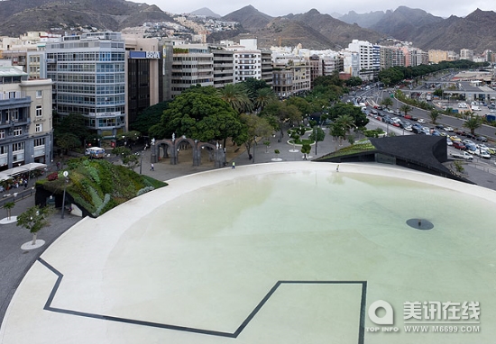 這個(gè)美麗的廣場(chǎng)位于西班牙Santa Cruz de Tenerife碼頭的附近,將加利群島(Canary islands)上的各種生態(tài)與附近的海洋聯(lián)系在了一起。廣場(chǎng)(Plaza de Espa?a)由Herzog + de Meuron公司設(shè)計(jì),是一個(gè)非常漂亮的綠色的空間,它建造在過(guò)去的遺址與未來(lái)的城市之上。許多年前,這里是一個(gè)“Castillo”古城,水池中的圖案顯示了舊時(shí)城堡的地基。水池周圍有許多建筑風(fēng)景:兩個(gè)有著綠色屋頂?shù)慕ㄖ嗖实膷u嶼生態(tài)和地形的多樣性。