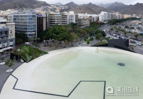 這個美麗的廣場位于西班牙Santa Cruz de Tenerife碼頭的附近,將加利群島(Canary islands)上的各種生態與附近的海洋聯系在了一起。廣場(Plaza de Espa?a)由Herzog + de Meuron公司設計,是一個非常漂亮的綠色的空間,它建造在過去的遺址與未來的城市之上。許多年前,這里是一個“Castillo”古城,水池中的圖案顯示了舊時城堡的地基。水池周圍有許多建筑風景:兩個有著綠色屋頂的建筑,多彩的島嶼生態和地形的多樣性。