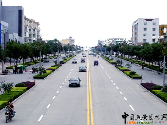 二○○三,建設局投資300萬元,對新華大街進行了徹底改造,從規劃到建設,始終注重提高園林藝術水平和綠地率,兩側便道新增綠化帶寬3.5米,約14000平方米,垂直綠化效果好,綠化植物配置合理,層次分明,景觀優美,布局合理,園林藝術性高,主要綠化樹種有國槐、紫薇、金女貞、小葉黃楊等近十個品種。