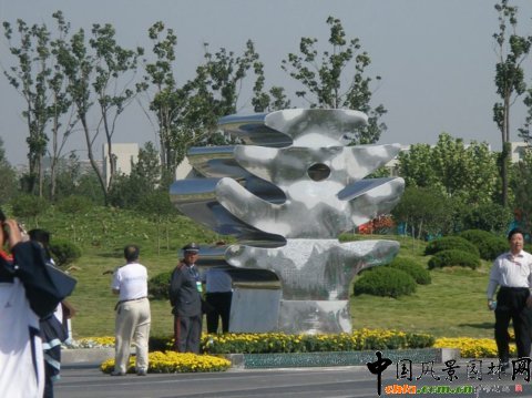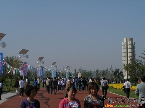 中國風景園林網 濟南園博會天圓廣場面積1.1萬平方米,呈圓形,設計理念是為表現古時人們對天的認識、以及"天一生水,水生萬物"的思想。