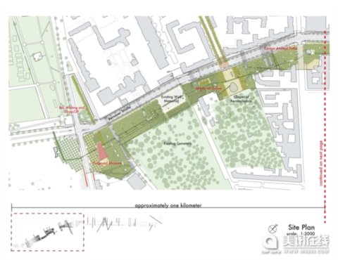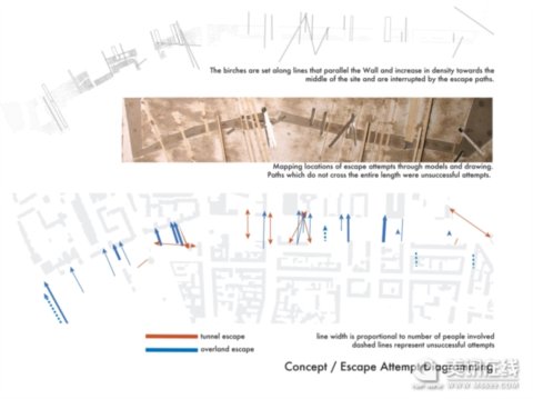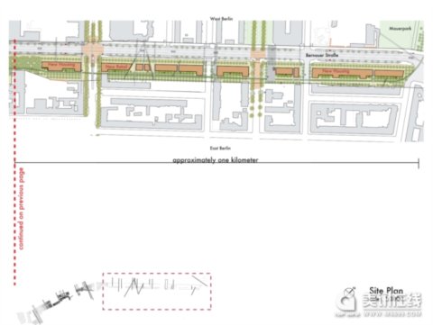 這項(xiàng)工程研究了怎樣將景觀進(jìn)行略微的改造,使其能夠成為柏林墻悲劇事件之后的一個(gè)和解、緬懷和沉思的地點(diǎn)。這個(gè)設(shè)計(jì)建議怎樣用建立一個(gè)紀(jì)念性的景觀鼓勵(lì)人們從過去的陰影之中走出來,因?yàn)檫@里是柏林人民生活的地方,同時(shí)也供游客進(jìn)行參觀。