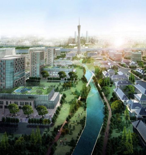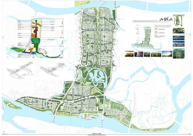 城市設計整合文脈、生態和人性三個要素,融入嶺南文化務實、開放、兼容、創新等特征,將整體功能定位為“具有嶺南文化特色的行政辦公中心、公共交通樞紐和生態宜居家園”。該功能定位具體包括五個要素:綠色開放中軸、區域行政中心、公共交通樞紐、生態綠地公園和濱水宜居新城。