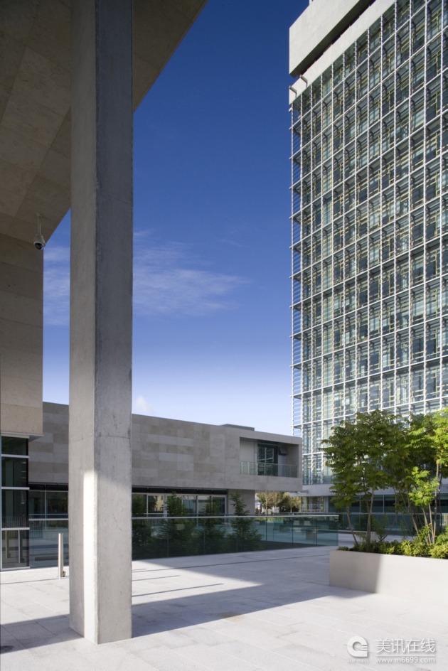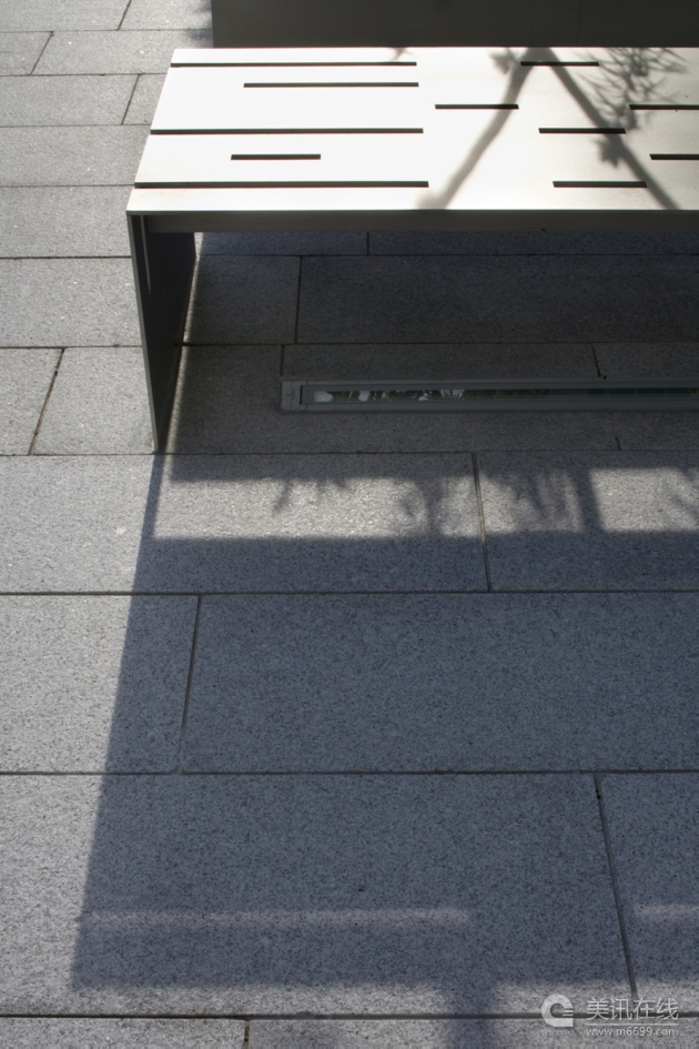 這個廣場的設計實行無縫建設,在較低的地段有兩個凹陷的集水池。院子里面鋪設鋁甲板并栽植大型數目,其中的根源就是對水的體現。在地面則有不銹鋼長椅、花盆、通風柵欄、以及鋪路的花崗巖。