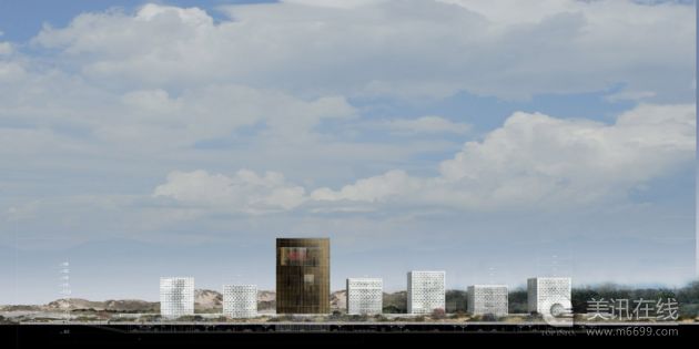 該項目占地7.2萬平方米,SHL事務所設計了一座波浪形的建筑,雕塑般的樓群結構由幾排各種規模的正方形大樓組成,成矩形狀排列,將與周邊干燥的沙丘與濕地環境和諧的融合在一起。游客將觀賞到一個引人入勝并排設計的公共花園,這是一個開放、民主的空間,人們在這里可以無限的遐想與交流。