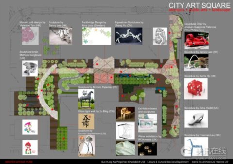 考慮到附近是奧運會馬術(shù)比賽的場地,此處的步行道已經(jīng)改造成一個時尚前衛(wèi)的國際性公共藝術(shù)廣場,廣場于7月24日開放。城市藝坊的目的是豐富這里公共場所,并增加香港的藝術(shù)文化水平。