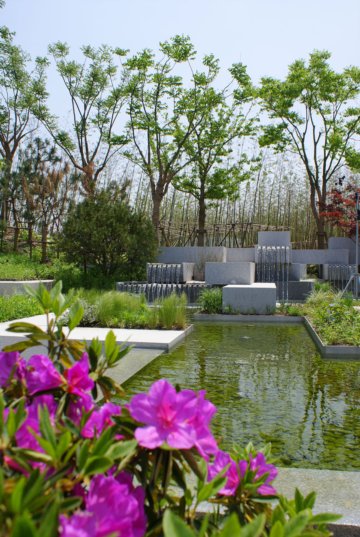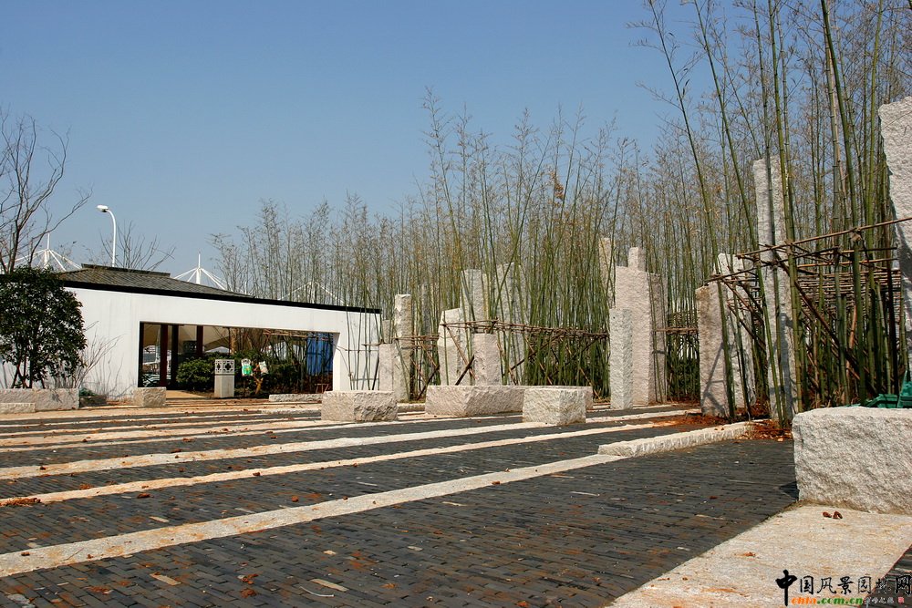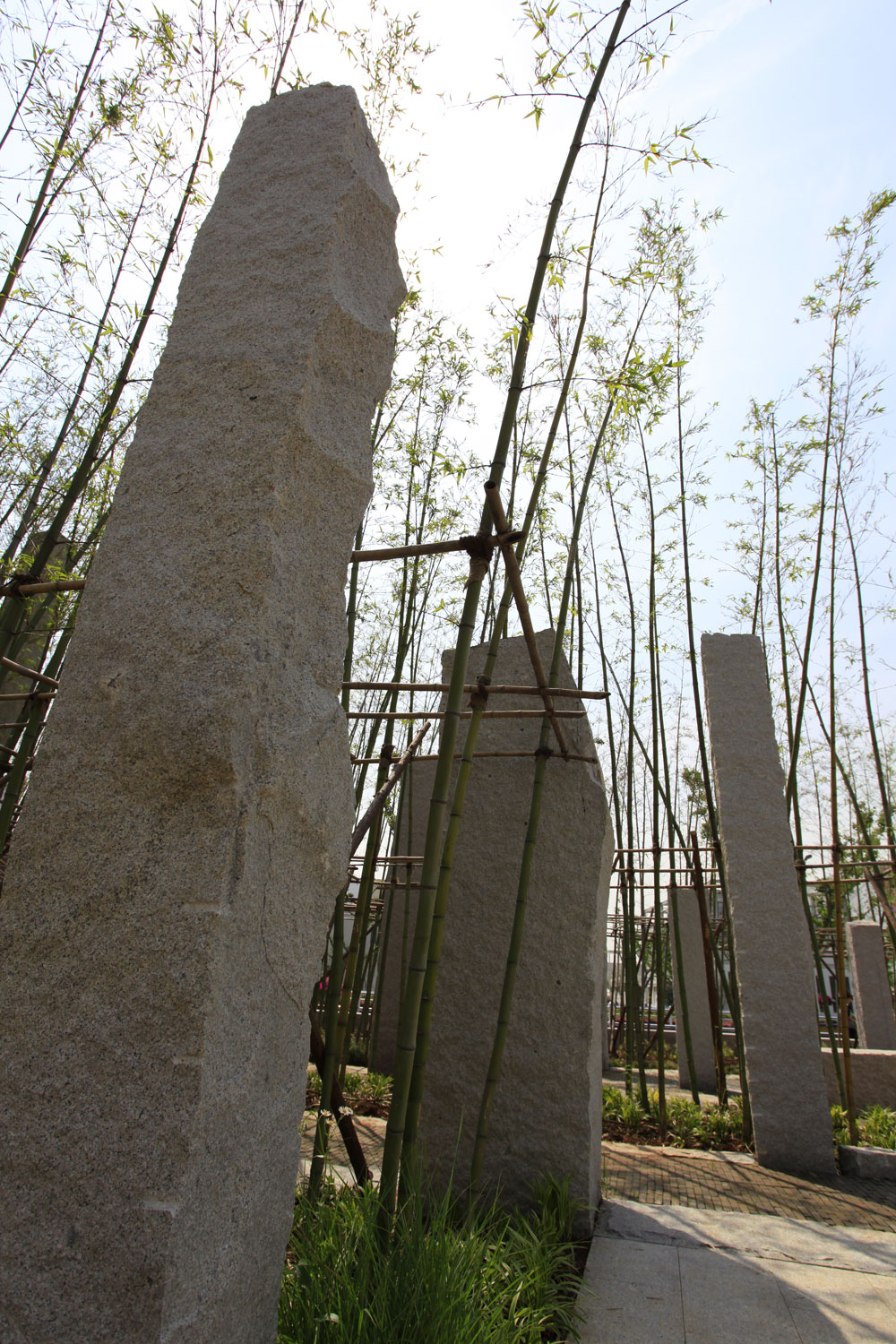 中國園有東南入口和西入口,石筍園位于東南方向的主入口處,石筍結(jié)合粉墻、植物等設計元素,以現(xiàn)代簡潔、明快的設計語言,引申竹筍的美好意向,來表達對世博園的美好祝愿。