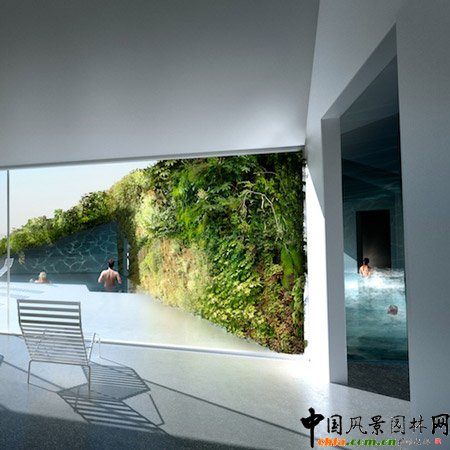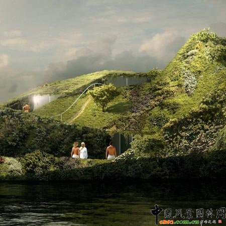 中國(guó)風(fēng)景園林網(wǎng) 德國(guó)建筑師Anne Holtrop聯(lián)手綠色科技公司Studio Noach Patrick Blanc設(shè)計(jì)了一個(gè)包含園林和礦泉療養(yǎng)地的人工浮島。該提議目前還在公示階段。
