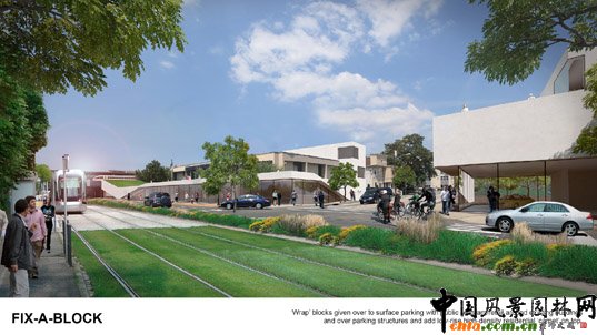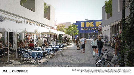 MALL CHOPPER:計劃細化商場周邊大量沒有充分利用的地面停車場,形成小尺度的周邊環境。