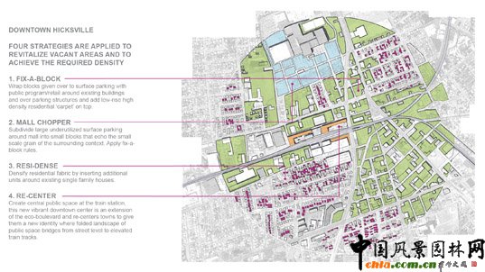 希克斯維爾(紐約城郊)采用四大戰略改變空地以達到要求的郊區密度,成為了恢復郊區活力的典范。