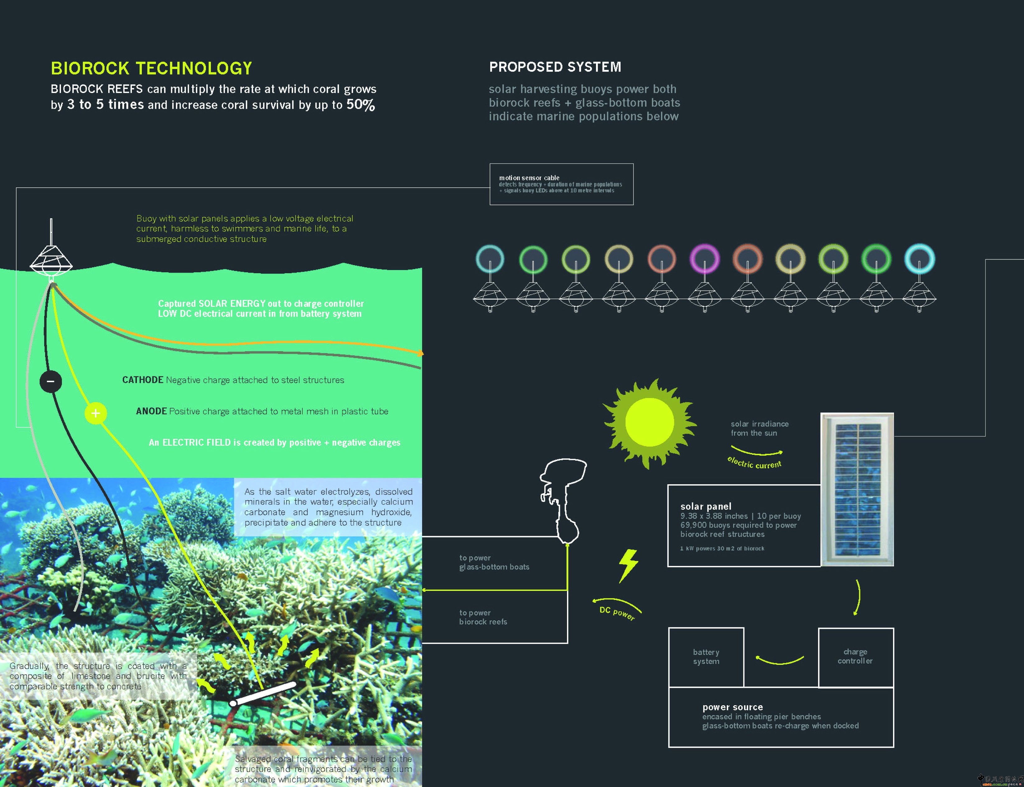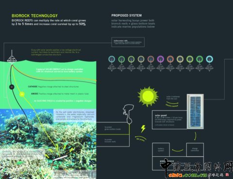 圖10、Biorock人工珊瑚技術:這一人工珊瑚礁技術可以讓珊瑚以自然繁殖的3到5倍速度來繁殖,并且可以提高50%的珊瑚成活率。