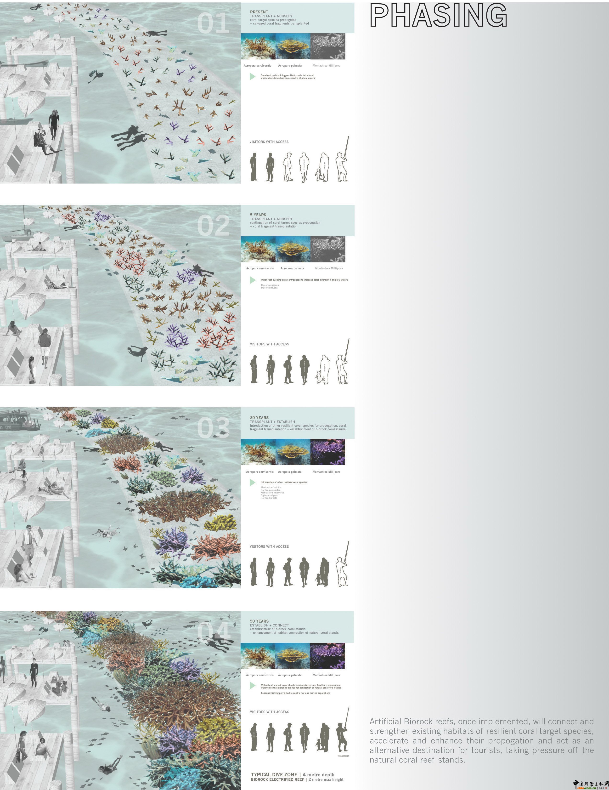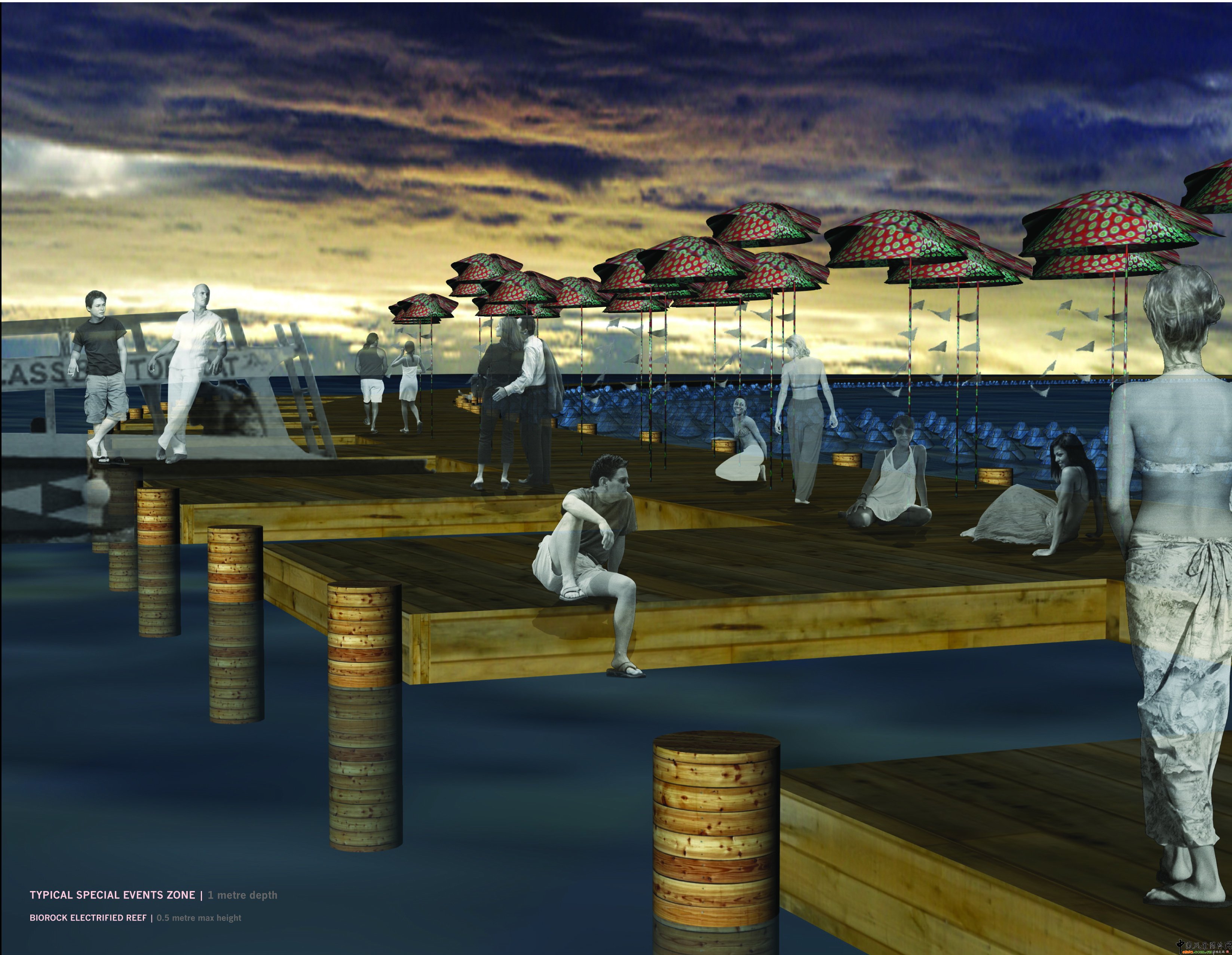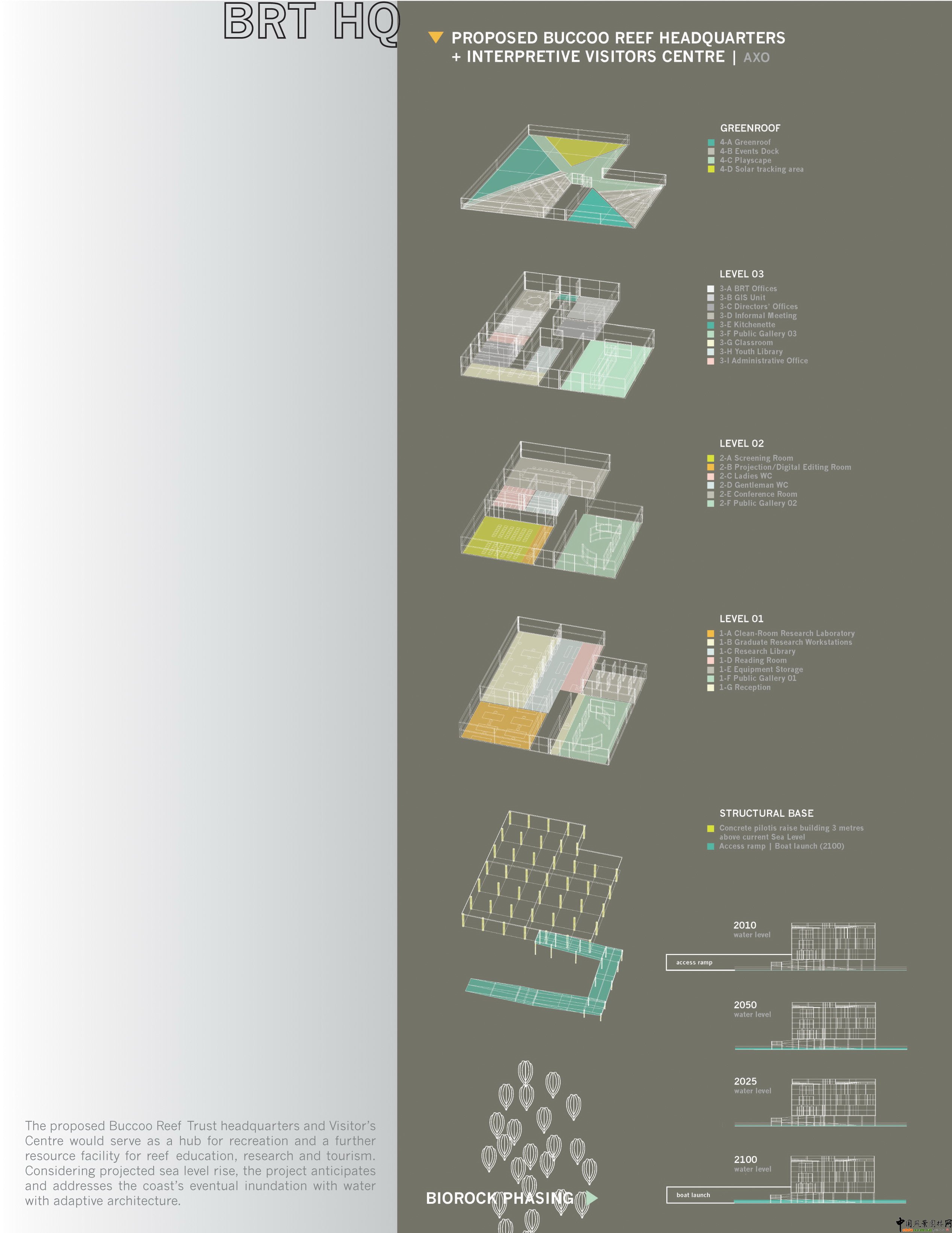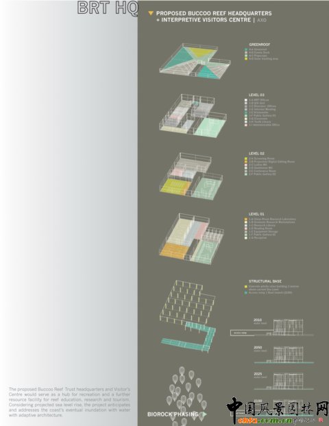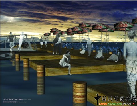 圖12、修復后的布科島會作為一個旅游集散地,人們可以到這里做珊瑚研究和旅游?紤]到海平面的上升趨勢,島上的建筑會在充分考慮這一因素而被建造。