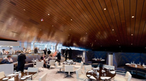 餐廳面積為11000平方英尺,有兩層,在第65號大街和赫斯特廣場分別設有入口。主餐區和廣場位于同一水平面,餐廳的透明立面設計讓用餐者和林肯中心的公共生活直接聯系在一起。。餐廳中間是一個1000平方英尺的廚房設計,正對著餐區。餐廳內設有休息區、吧臺區和私人用餐區,總共能容納194為客人。