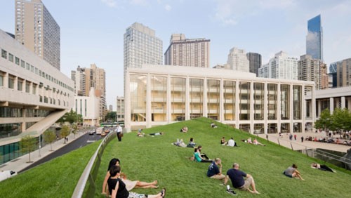 為林肯中心表演藝術而設計的海帕館已經完工,項目位于赫斯特廣場和第65號大街的邊界上,這個新的獨立式建筑包括一個新的公共草坪和一個餐廳。