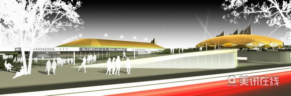 這個運動主題的公園是盧布爾雅那市和Grep開發(fā)商公司共同合作的產物,項目將于三月份動工。運動公園將由一個足球場和一個帶大型購物中心的多功能體育館組成,外部有供公眾娛樂休閑的公園綠地。這個占地182,000㎡的運動公園將成為盧布爾雅那市居民生活的一大亮點,吸引著各不同年齡階層的人在這里豐富他們的生活。 體育館、足球場以及成一整體的菱形狀居住樓,將和西邊的世界貿易中心和東部的森林區(qū)組合在一起,成為這個城市東北部的城市入口。雙層樓的購物中心和內部停車場則剛好設計在一個12米深廢棄的巨大沙礫坑內,覆蓋在購物中心上部的綠色公園延續(xù)著穿越外環(huán)環(huán)形路的自然景觀,并與市區(qū)的其他綠色空間渾然成一體。 根據目前的經濟、社會現狀和歐洲足球協(xié)會聯盟的環(huán)境標準,足球場設計為一個可容納16,000觀眾的空間,突出于綠地公園之上。從上空俯視,它如同一個巨大的彈坑。 體育館位于公園的西北角,可容納12,000名觀眾。圓形屋頂如同一個巨大的貝殼扣在大地上,波浪狀的褶皺則是這個巨大貝殼的微微開啟的外沿。不僅如此,每一個開啟的外沿都是通往體育館的入口,設計實用而新穎。 總體設計:Sadar Vuga Arhitekti