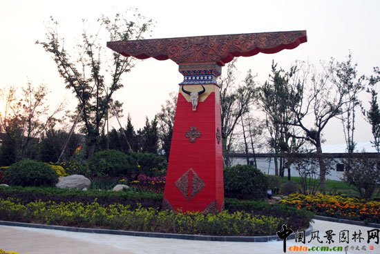 其中,青海園,這個(gè)風(fēng)光旖旎的景園是青海景園。“走進(jìn)大美青海,感受高原神韻”。青海景園,獨(dú)出心裁地用青海地圖為設(shè)計(jì)原型,采用彩色水晶膠,構(gòu)成了三維空間的青海地圖。結(jié)合五人紋盆為構(gòu)圖的舞蹈廣場,形成了一個(gè)如詩如畫的入口處。景園里面,這些五人紋盆、石刻唐卡、藏式柱、牦牛頭等小品景點(diǎn),極富韻味地反映了青海園的民族主題,體現(xiàn)了璀璨的地域文化。還有這具有自然生態(tài)意義的卵石灘、沙丘、樹木花卉,非常傳神地塑造了感人至深的青海風(fēng)光。