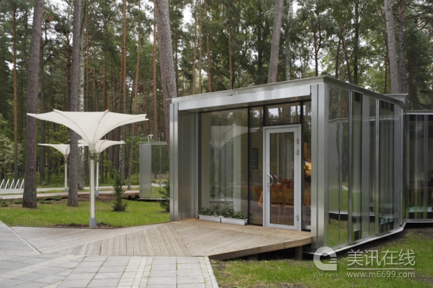 設(shè)計(jì):Substance公司 Dzintari森林公園因其地理位置而與眾不同,它位于Jurmala城的最中心位置。因?yàn)楣珗@周圍的公共設(shè)施和居住區(qū)要做密集型開發(fā),所以將公園列入到城市基礎(chǔ)設(shè)施的總體規(guī)劃中,以便市民參與,這也成為市民熱點(diǎn)的議題。 Dzintari森林公園中最為珍貴的財(cái)產(chǎn)是一棵有著兩百年歷史的松樹和越橘灌木叢。新的基礎(chǔ)設(shè)施是一個(gè)單一的機(jī)制,這個(gè)機(jī)制可以控制公園中游客同自然的關(guān)系。 基礎(chǔ)設(shè)施在公園中隨處可見,公園中最為重要的娛樂(lè)設(shè)施是公園中間的內(nèi)嵌溜冰道,步行天橋?qū)⒘锉吆托腥说缆贩蛛x開來(lái)。公園中還有溜冰板和街球廣場(chǎng)、兒童運(yùn)動(dòng)場(chǎng)、咖啡廳、運(yùn)動(dòng)物品租用處,洗手間和其它建筑設(shè)施。 模塊系統(tǒng)是公園建筑物形狀設(shè)計(jì)所要遵循的最適合的原則。模塊像樹枝或樹根一樣,在地下保護(hù)自然地基因素并形成地上步行道路結(jié)構(gòu)。最終,建筑的外立面根據(jù)角度不同會(huì)有許多分離的平面,這種設(shè)計(jì)有效的減少了整體空間的龐大感。像鏡子一樣的外立面可以反射出周圍環(huán)境的自然面貌,同時(shí)可以消除新建筑給公園帶來(lái)嶄新的感覺(jué)。