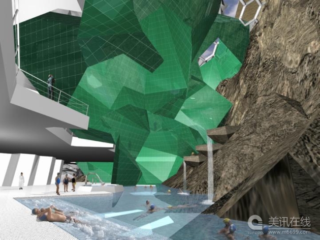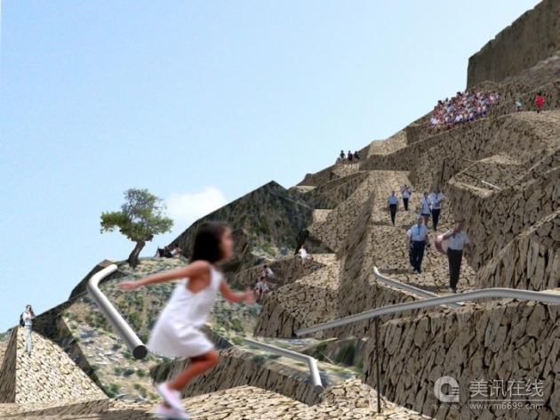 ![]() Guallart也設(shè)計了西班牙Denia文化公園,公園的設(shè)計也延用了山脈的主題。這項(xiàng)工程通過開發(fā)文化,市政和社會設(shè)施將西班牙Denia的城堡進(jìn)行重行排列,以此來提高城市可再循環(huán)系統(tǒng)。公園內(nèi)有飯店、電影院、禮堂、Spa館,禮堂可用來舉行會議,Spa館中則有一個鹽水湖。