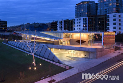 從展館通往海灘的道路連接了三個特色分明的區(qū)域:一座茂密、溫和的叢林;一座隨季節(jié)變化的落葉林;一座海邊花園,這包括一系列的新潮汐梯田,為大馬哈魚和海水植物提供生活環(huán)境。 奧林匹克雕塑公園稱得上是“藝術景觀”,在博物館墻外為人們提供新的現(xiàn)代藝術體驗。