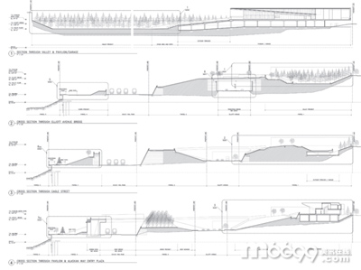建筑師:Weiss/ManfrediArchitecture/Landscape/Urbanism 地點:西雅圖,華盛頓州,美國 項目團隊:MarionWeissandMichaelA.Manfredi,ChristopherBallentine,ToddHoehnandYehreSuh,PatrickArmacost,MichaelBlasberg,EmilyClanahan,LaurenCrahan,BeatriceEleazar,KianGoh,HamiltonHadden,MikeHarshman,MustaphaJundi,JustinKwok,JohnPeek,andAkariTakebayashi 結構和土木工程顧問:MagnussonKlemencicAssociates 機電工程顧問:ABACUSEngineeredSystems 照明設計顧問:BrandstonPartnershipInc. 總承包商:SellenConstruction 巖土工程顧問:HartCrowser 環(huán)境顧問:AspectConsulting 水利工程顧問:AnchorEnvironmental 繪圖顧問:Pentagram 安保和視聽顧問:ARUP 餐飲服務顧問:BonAppetit 廚房顧問:JLRDesign 商鋪顧問:Doyle+Associates 項目管理:BarrientosLLC 客戶:西雅圖藝術博物館 項目年份:2001-2007 攝影:BenjaminBenschneider,BruceMoore,PaulWarchol 這是一個新城市類型的雕塑公園,位于西雅圖未開發(fā)的濱水區(qū),這里曾經(jīng)是工業(yè)棕色地帶,鐵軌和一條國家公路將這個地區(qū)分隔開。此項目把三個分隔的區(qū)域連接起來,這利用到一座連續(xù)的Z字形綠色平臺,平臺的高地落差有40公分,平臺位于城市和水域之間,因此在這里可以很好地欣賞城市天際線和艾略特灣。