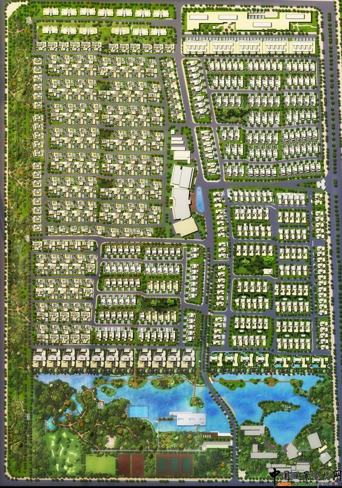 中國風景園林網訊 近年來,北京周邊新建的別墅往往先從總體環境入手,待景觀成型后,再讓業主按規劃選擇地點與別墅。由易蘭規劃設計事務所設計的龍灣別墅就是很好的例子。本文將詳細介紹該項目的設計理念、手法等。 項目名稱:龍灣別墅(Dragon Bay Villa-Harmonious villa) 設計單位:ECOLAND易蘭規劃設計事務所 設計類別:景觀設計 建設地點:北京 占地面積:1800畝 建筑面積:1000畝 委托單位:北京英才房地產開發有限公司 完工時間:2008年5月 龍灣別墅位于北京順義區溫榆河別墅區內,西南、東南側擁有200米寬綠化帶,西南側依傍溫榆河,有1800米的河岸景觀線。該項目是以低密度為主的環保型高檔精英社區,地處北京最具國際色彩的高尚居住區。項目以現代中式傳統元素為源泉,并在結合了市場上主流的歐美風格,重新發掘與回歸地域特色。以現代人文主義視角,融入了中國居住理念之后形成了龍灣的特色風格。針對京城溫榆河水資源稀缺現狀,結合地域水面特征,在社區內建了4萬平方米的內湖貫穿整個園區,創設組團式水景園林。 龍灣和院的建筑布局為十字形和T字形,這樣自然就形成了三進式的四個庭院花園,細分了每個庭院的功能。下沉庭院主要為了提升地下室的采光與通風功能。在庭院的裝飾上借用了很多中國傳統建筑的元素,院墻采用裝飾型花窗,雕塑與小品的設置體現價值感與生活場所的高品位氣質。商業街的環境與位置決定其景觀設計既要與整個社區相協調的同時也要兼顧其對于溫榆河中央別墅區的服務功能,設計師創造性地設計了龍灣水景觀商業,在整合形態各異的商業建筑基礎上,用景觀的手法劃分出不同業態所需空間。例如:露天親水平臺的設計巧妙結合建筑與景觀的同時的也擴大了商業利用空間,提升其商業價值;在商業建筑拐角設計的疊水噴泉,既滿足建筑從里往外看的效果,也創造出熱鬧商街中與眾不同的幽靜一角,別有情趣。除此之外,兒童游戲區和音樂旱噴的設計使得商業街更聚人氣。