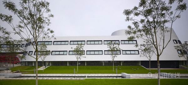 這個項目是英國諾丁漢大學的新校園,是計算機系和經管系的校區,離主校大概有1公里距離,小區之間有校巴免費接送。因為該校從90年代開始學生的數量不斷的增多,學校在1996年舉行了一次投標征集新校園建設方案,落成之年是英國諾丁漢大學的50周年校慶,所以就命名為Jubilee Campus(Jubilee意為50年節)。該建筑群有教室、圖書館、餐廳和宿舍,還有景觀,可謂是一個完整的生態社區。工程耗資達5,000萬英鎊。在為校園提供良好的教學環境和住宿環境的同時,還把建筑作為一個地區的可持續發展(生態)的建筑可參考的例子。參加競標的有Feilden Clegg,MacCormac Jamieson & Prichard與 Michael Hopkins。最后Michael Hopkins獲選。Michael Hopkins 方案的目標是在資金的控制下達到最大的生態效應。 該地段原來都是已經廢棄掉的工業廠房,建筑師因地制宜,把建筑放在海拔相對高的北邊,而把湖和景觀放在南邊。水在這個建筑群里相對顯得非常重要,在建筑的周圍都設置了小水道把雨水引入湖里面。這個景觀帶就形成了建筑群和城市邊界的緩沖帶,不但為學生提供一個宜人的休息場所,而且還重新塑造了自然空間從而把野生動物引入人的空間。把主干道設置在建筑背面,防止建筑里面有車輛的出現,使得人在建筑環境中感到格外的安全。 建筑由4個部分組成:住宿區、教學區、研究中心(圖書館)和可容納400人的餐廳。總體來說主要建筑都是圍繞著良好的景觀點布置的。相對單體來說每個教學建筑都有共享的中廳,于是形成了E形的平面。 建筑師非常注重材料的生態效應,因良好的熱效應而選擇了木材貼面,預制木材貼面把主體建筑全包起來,加上一個Warmcell絕緣保溫層,在建筑外形成一個“呼吸”外皮。其不但有良好的熱阻性能,而且能夠吸收濕氣,在中廳的外墻中還加了一層麻布作為吸音層。 建筑背面樓梯頂上都有一個機械通風系統,形狀像似一個斗篷帽子,專門用來處理室內氣流通風。原來建筑師打算用自然通風系統,可是考證發現自然風并不能有效的建筑教學區,于是就采用了機械系統。盡管建筑在全年大多數時間內都在運行這個系統,但是通過制動控制系統在一些日子內通過打開南邊的玻璃和熱壓效應可以得到良好的自然通風效果。 建筑的朝南以最大限度的得到太陽輻射,同時,建筑中廳用作為一個陽光房,進入教室的氣流在這里得到加熱。 整合太陽能板設計是這個建筑的一個特點。所謂整合設計就是在做建筑設計的時候把太陽能光電板設計考慮進去,而不是后來才加的。建筑師考慮了適合的太陽水平角和高度角把光電板安置在中廳。同時為了減小其對自然光的影響特意把它安置在中間。