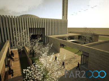 Team42的成員包括OnatOktem、ZiyaImren、ZeynepOktema和UriTzarnotzky。他們設計的“綠色清真寺”(GreenMosque)概念獲得了“建筑:問題與解決方案”國際競賽中“最佳獨立式宗教建筑獎”。 這個項目組不僅設計一座清真寺,還塑造了一個用于各種社會活動和互助活動的宗教場所。項目中將建造主建筑、一座圖書館、教育和演講廳以及一座“煮湯的廚房”,強化了聚集在一起的社區社交活動。穹頂的設計也是將結構單元組合在一起,構成了整體的形狀。 這座清真寺不僅有著連續交互的空間,也尊重了使用者的私密。圖書館的綠色屋頂、廚房以及演講廳都形成清真寺的隔熱區,改進了空氣質量,降低了溫度,減少熱島效應。 雨水和廢水都將收集起來,澆灌花園,并種植玉米、洋蔥和土豆。由于地處美國中西部,這些植物所需水量較少。