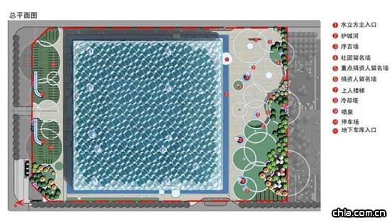 相關(guān)鏈接: 周圍環(huán)境: 國(guó)家游泳中心位于奧運(yùn)公園中心軸線區(qū)以西,與國(guó)家體育場(chǎng)——鳥(niǎo)巢遙相呼應(yīng),南側(cè)為北頂娘娘廟文化保護(hù)建筑,北側(cè)煒國(guó)家體育館,因此占據(jù)相當(dāng)重要的地理位置。 水立方景觀創(chuàng)意 國(guó)家游泳中心的核心創(chuàng)意為力圖營(yíng)造一個(gè)以“水”為生命的空間,里面容納與水相關(guān)的各種活動(dòng),讓人享受水帶來(lái)的美和歡樂(lè),水與方相交,其交集“水立方”是國(guó)家游泳中心建筑的主體,方擲于水,水滴四濺,滴水蕩出漣漪,形成國(guó)家游泳中心室外自然景觀的背景圖案。在此背景圖案之中,水景、草坪、小徑、景亭及其他廣場(chǎng)內(nèi)構(gòu)筑物均遵循單純的圖形幾何圖案造型,并以自然隨機(jī)的形式進(jìn)行分布。 水景是游泳中心室外廣場(chǎng)景觀設(shè)計(jì)的中心主題,也是塑造建筑主體邊緣及主要公共入口空間的重要元素,水的特性是虛幻、靈動(dòng)和可變的,它的顏色、聲音,不同的形態(tài),與光之間的互動(dòng)效果等共同定義了水本身。我們希望通過(guò)國(guó)家游泳中心的水景設(shè)計(jì)將以上我們對(duì)水的理解形象化和藝術(shù)化,與建筑主體“水立方”相呼應(yīng),水立方的水景設(shè)計(jì)遵循簡(jiǎn)潔、抽象的原則,充分體現(xiàn)水的寧?kù)o和柔美。另一方面,水又是可變的,不定的,狀態(tài)不一、隨外界的感染而呈現(xiàn)不同表情的,在特殊的時(shí)段和場(chǎng)合,這些水景將被人為“激活”,呈現(xiàn)另一番歡騰和熱烈的景象。 ![]() 夜景鳥(niǎo)瞰圖 國(guó)家游泳中心建筑的水滴形象主要以圓形水池、旱噴泉以及圓形鋪地形成場(chǎng)地上與水相關(guān)的景觀小品。 國(guó)家游泳中心捐資人留名弧墻、冷卻塔穿梭于其中,構(gòu)成南廣場(chǎng)活躍的景觀要素。北廣場(chǎng)主要由地下車庫(kù)入口及停車場(chǎng)等因素構(gòu)成,滿足功能上的需求。 “護(hù)城河圍繞國(guó)家游泳中心周圍,既對(duì)建筑起到了很好的襯托作用,又避免過(guò)分的靠近對(duì)建筑主體造成的意外損害。 ![]() ![]() 國(guó)家游泳中心捐資人圓夢(mèng)園景觀設(shè)計(jì)說(shuō)明 圓夢(mèng)園的設(shè)計(jì)將國(guó)家游泳中心南部廣場(chǎng)的設(shè)計(jì)意念融入其中,使中華圓夢(mèng)園與整個(gè)地塊融為一體。園區(qū)設(shè)計(jì)以圓形為母題,與“水立方”的矩形體量相呼應(yīng),運(yùn)用水珠激蕩起的圓形波紋與水立方交相輝映的象征手法,使“百年奧運(yùn),中華圓夢(mèng)”的主題思想得以體現(xiàn),既反映了東方文化中“天圓地方,天人合一”的人文館與世界觀,也象征中華民族團(tuán)結(jié)一心的民族精神。入口處的硬質(zhì)鋪地與大面積的綠化景觀相互滲透,水池點(diǎn)綴其中,弧形的留名墻依“波紋”輪廓布置成舒展的平滑曲線,就像在荷葉間穿梭的魚(yú)兒,既大氣又生動(dòng)活潑,使園區(qū)平添了動(dòng)感,更寓意著海外赤子離不開(kāi)祖國(guó)母親的深刻含義。 留名墻沿著圓形草地與硬質(zhì)鋪裝的交線進(jìn)行布置,緊鄰環(huán)形的景觀小徑,為觀者提供了方便直接,但與疏散人流不互相干擾的游覽流線。該路徑與入口廣場(chǎng)聯(lián)系緊密,使捐贈(zèng)人的姓名得以充分的展示。 ![]() 圓夢(mèng)園效果圖 ![]() 圓夢(mèng)園夜景效果圖 ![]() 序言墻立面圖 ![]() 效果圖